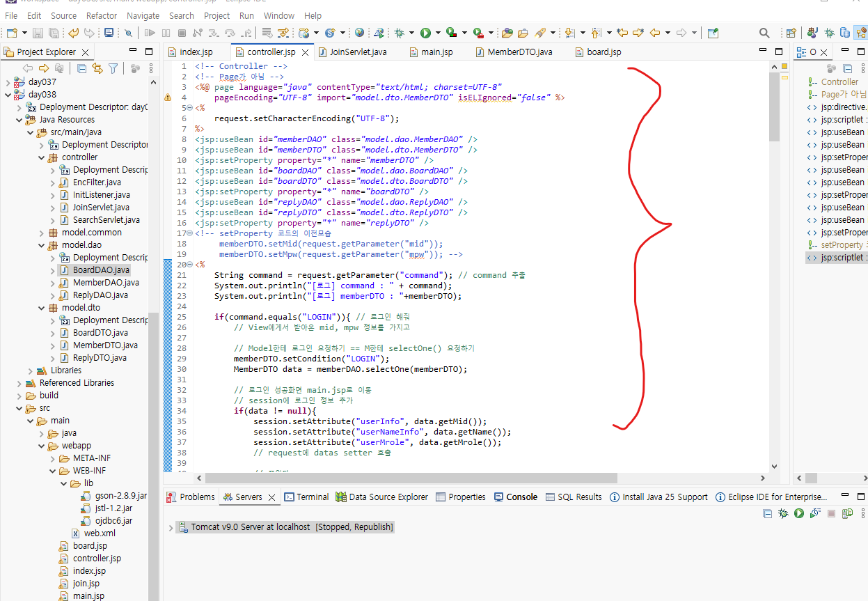 17~21, 31~34 내가 컨트롤러 서블릿을 만들 때 나옴