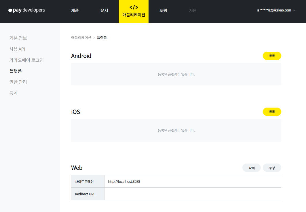 Web의 사이트도메인에는 내 프로젝트에서 접속하는 도메인 주소를 등록하면 된다