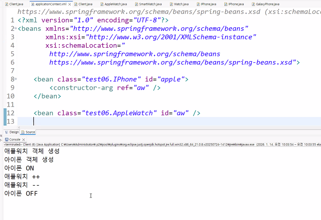 생성자 주입은 애플워치가 없으면 아이폰이 생성이 안된다.