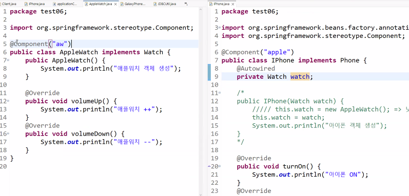 @Autowired로 생성자에서 Watch를 주입(초기화)한 것이다.