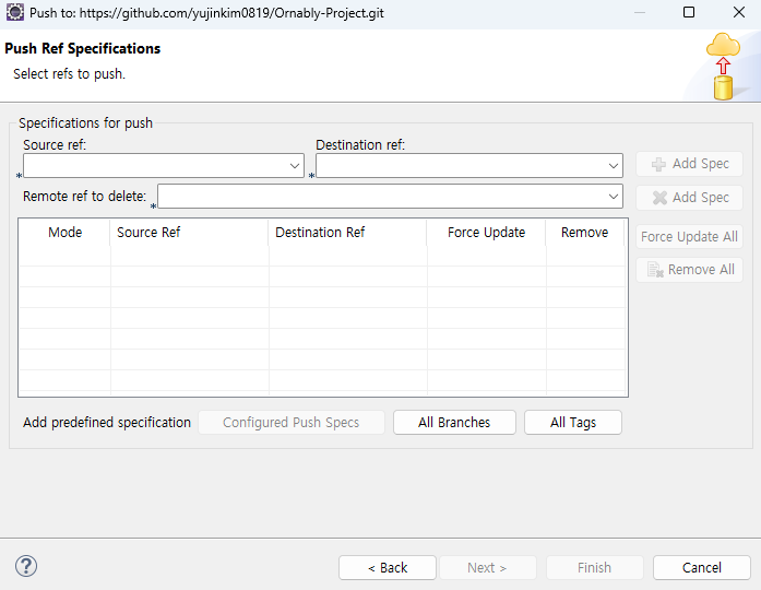 Push Ref Specifications = Push 규칙 설정