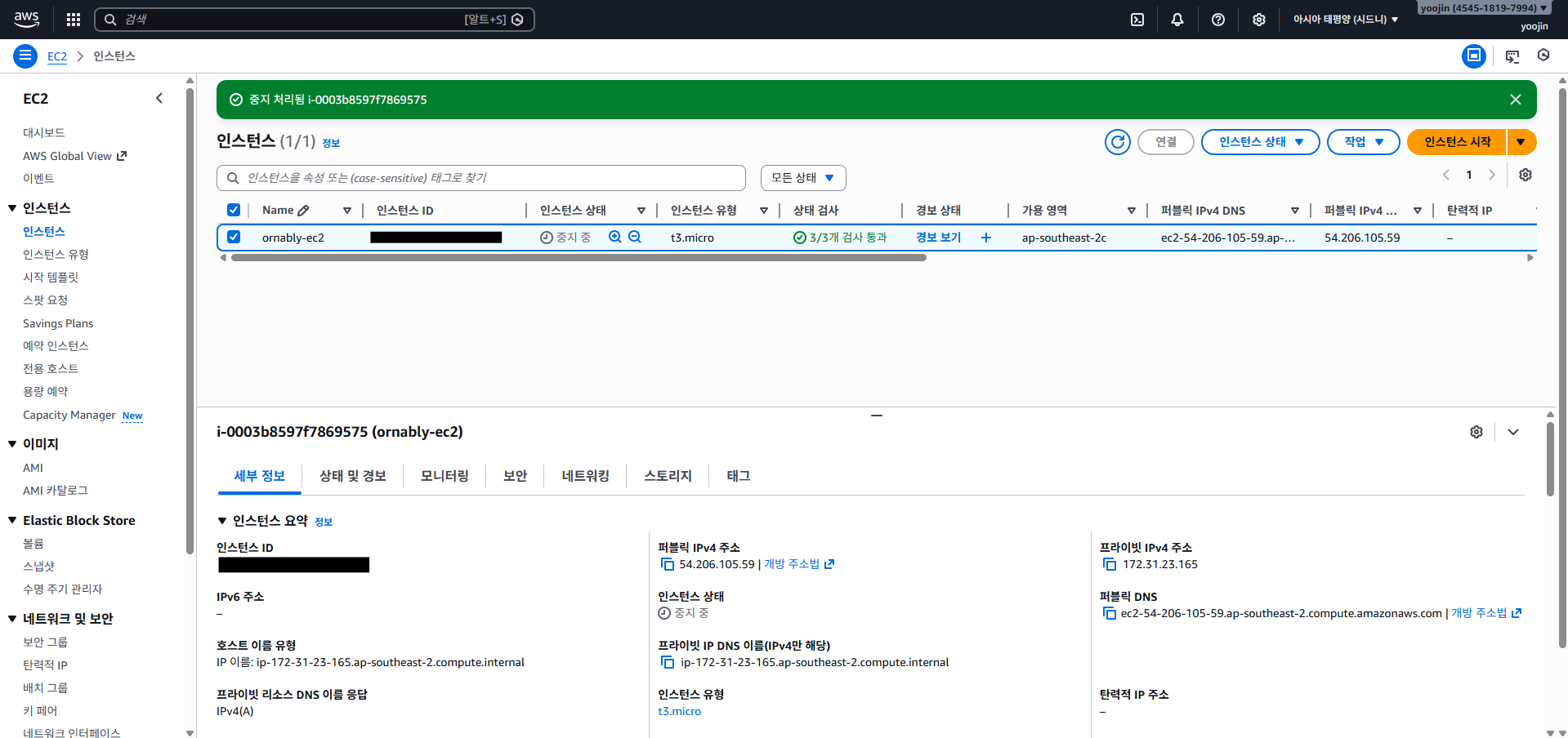 EC2 인스턴스 중지 (필수)