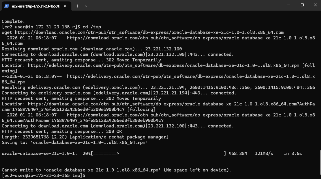 EC2 기본 루트 볼륨(8GB) 이 Tomcat + Java + 로그 + Oracle 21c XE (2.2GB) 감당 안 됨