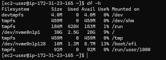 /dev/nvme0n1p1 30G 28G /
