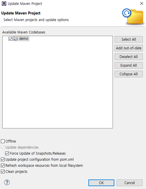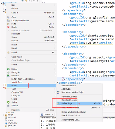 Maven ▶ Update Project ▶Force Update of Snapshots 채크 후 OK