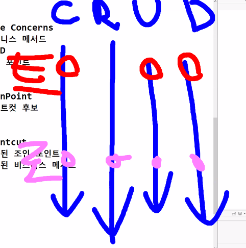 | 🐌 핵심 관심 🐌 Core Concerns 비즈니스 메서드 CRUD 조인 포인트 JoinPoint |