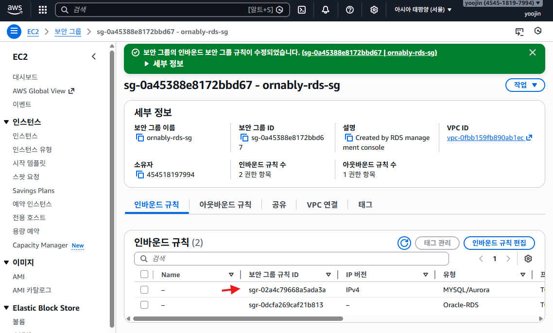 마지막은 EC2 보안그룹 ID를 넣으면 된다