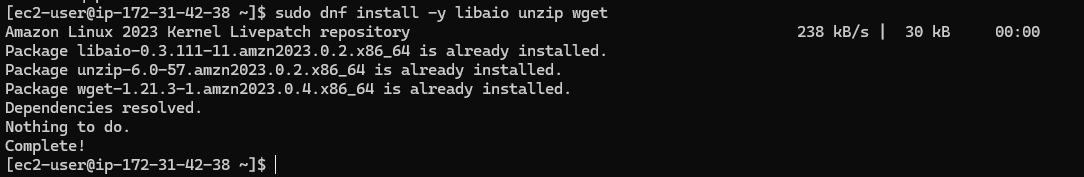 sudo dnf install -y libaio unzip wget
