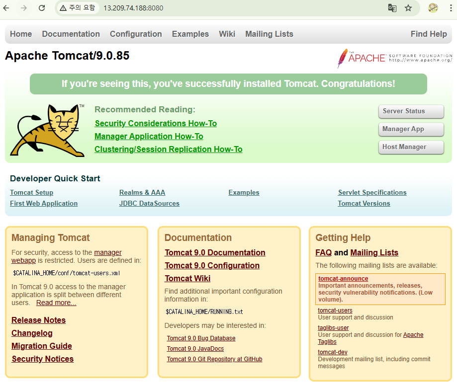 EC2 서버 안 홈 디렉토리 안에서 톰캣을 설치해보자