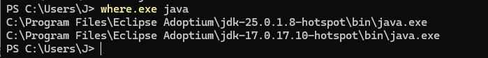 1️⃣ jdk-25\bin\java.exe ← PATH 1순위 (지금 실제로 쓰는 놈)