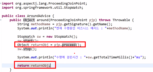 반환값이 있기 때문에 applicationContext.xml에서 returning 속성을 사용해