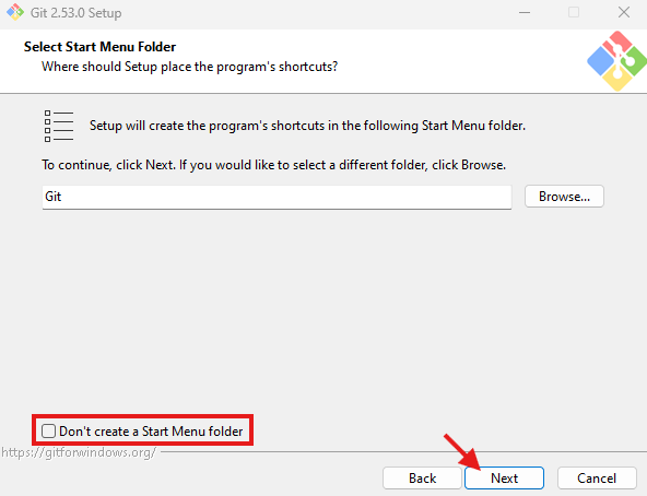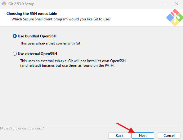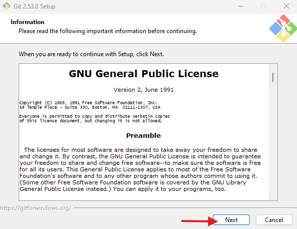 Git Bahs에 대한 정보 및 라이센스에 대한 내용을 동의한다 ▶️ Next