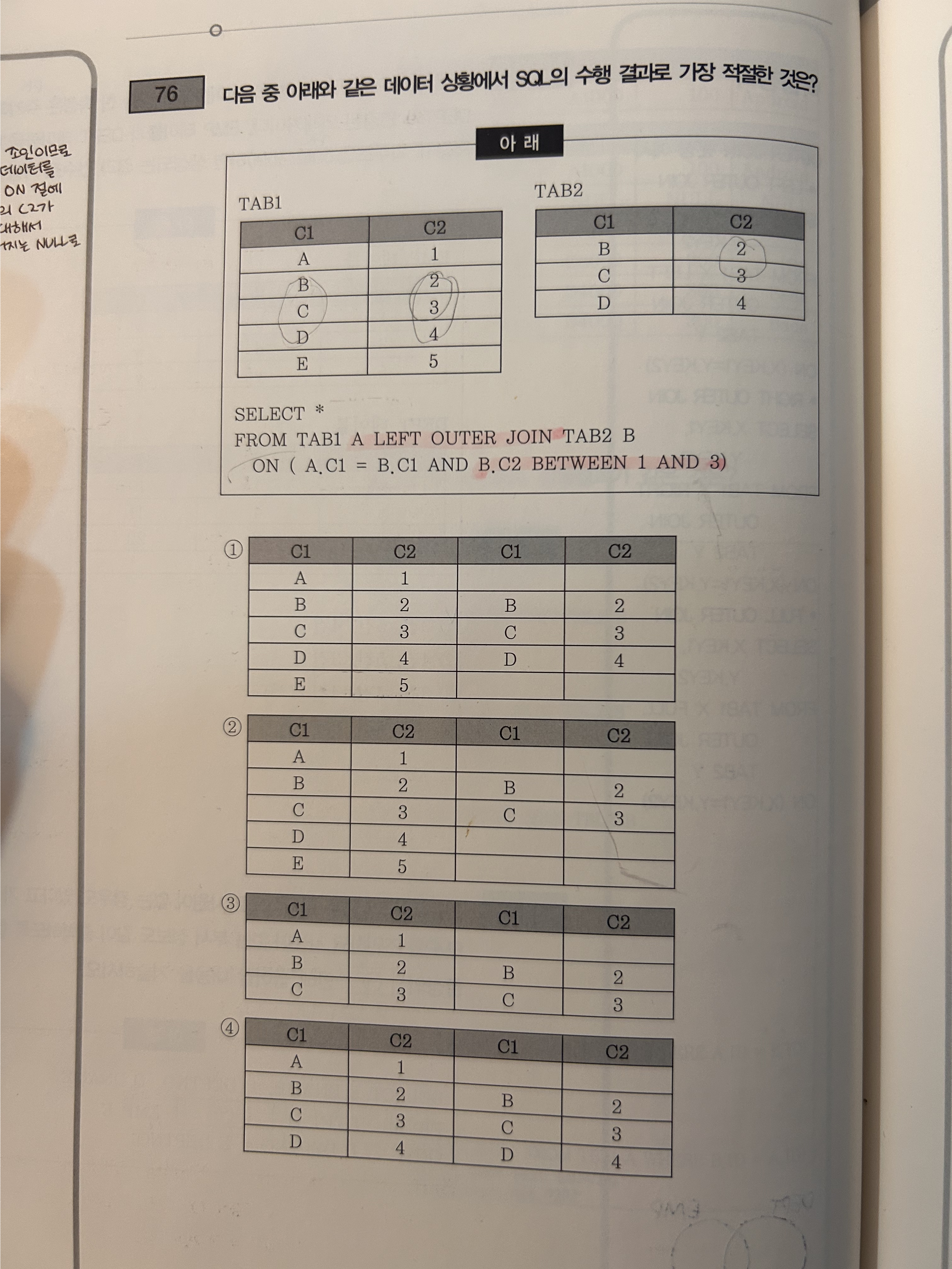 LEFT OUTER JOIN 이므로 TAB1은 전부 출력됨