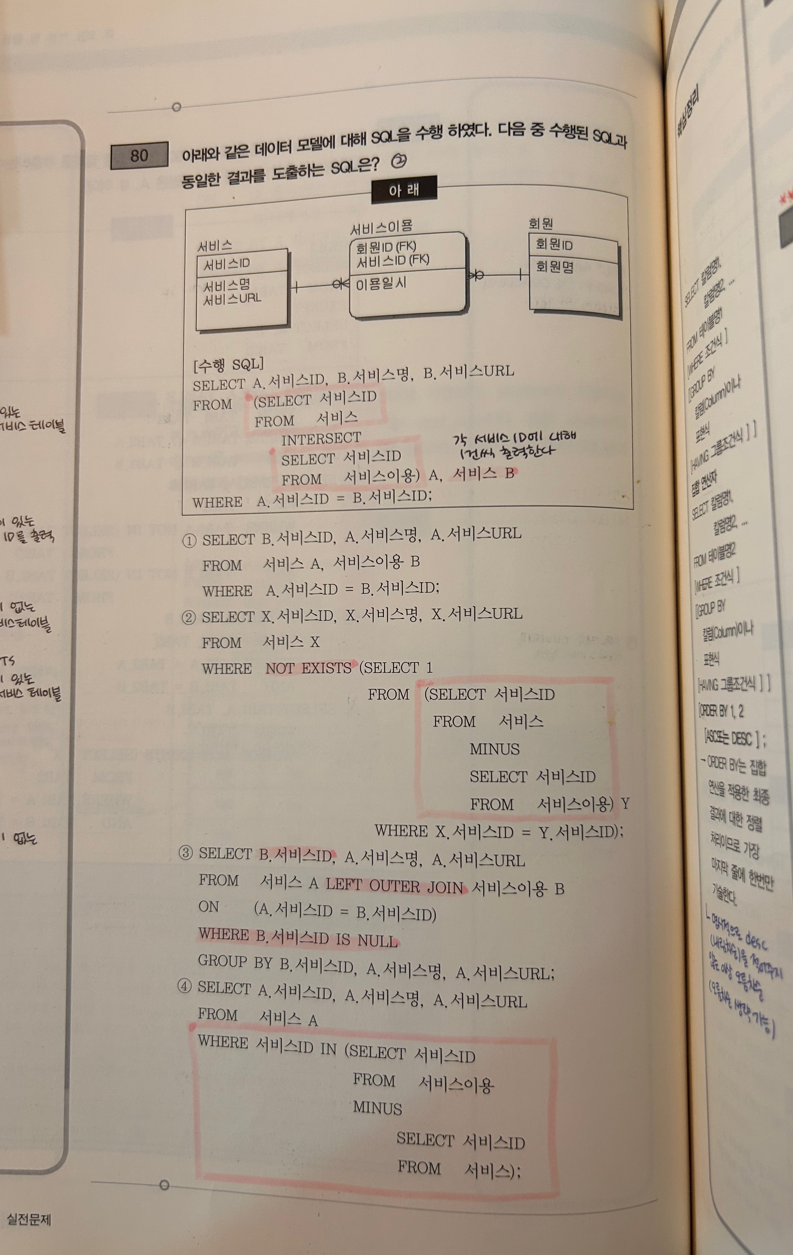 두 쿼리를 비교해서 첫 번째 쿼리에는 있고