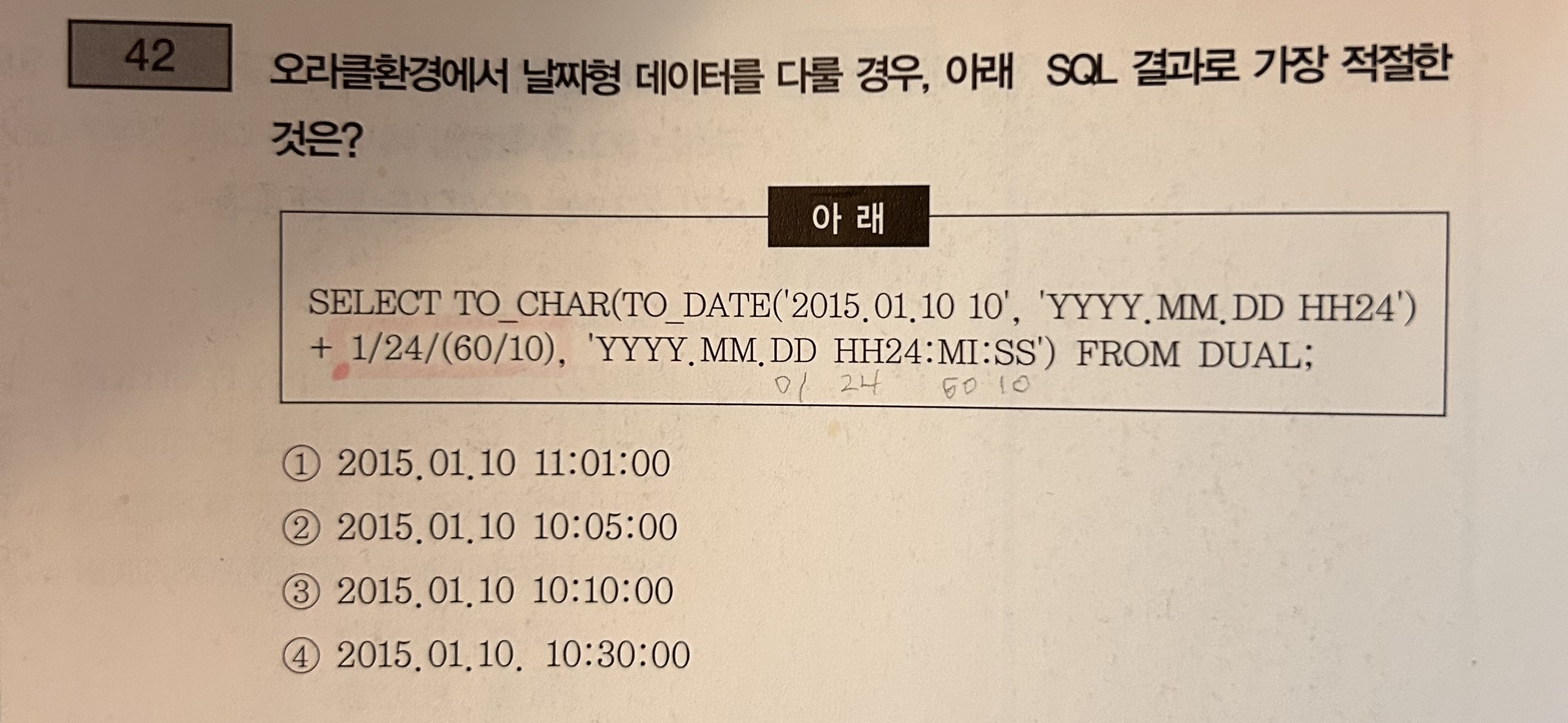 TO_DATE('2015.01.10 10', ...)를 보면 시작 시간 = 2015.01.10 10:00:00