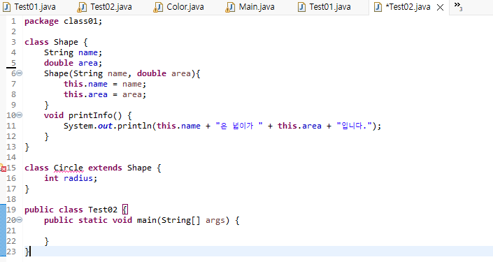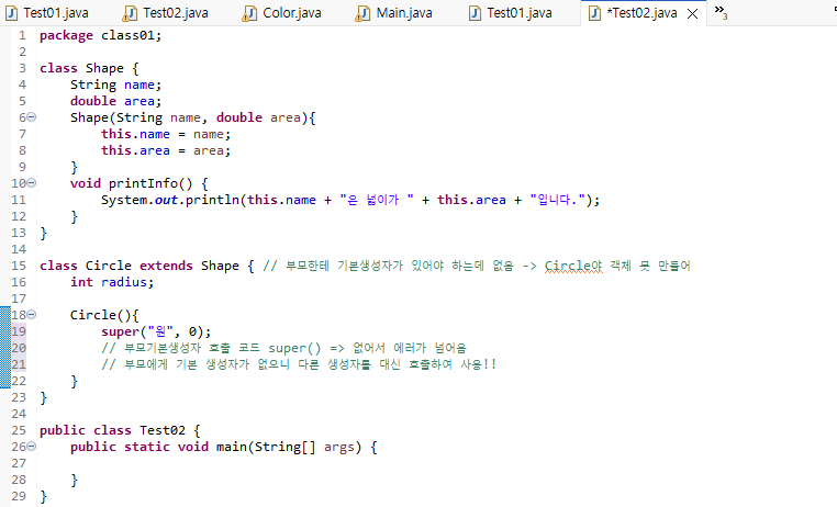 라는 기본 생성자가 없어 class Circle에 에러가 발생한다